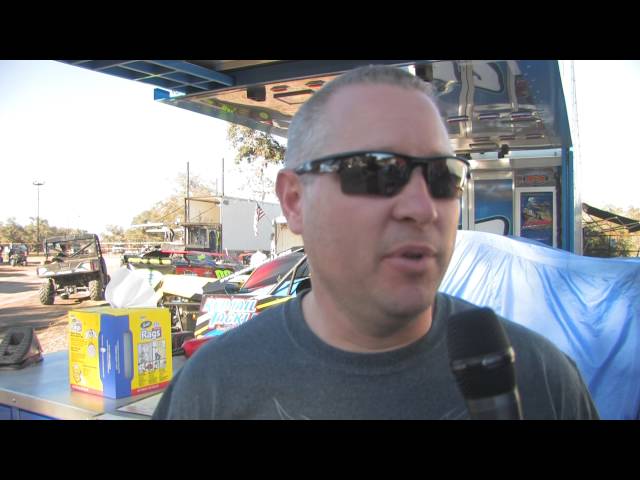 <p> Bryce Hall interviews defending USMTS national champion Jason Hughes of Watts, Okla., prior to the USMTS Casey&#39;s Cup powered by S&amp;S Fishing &amp; Rental event at the Shady Oaks Speedway in Goliad, Texas, on Thursday, Feb. 11, 2016.</p>